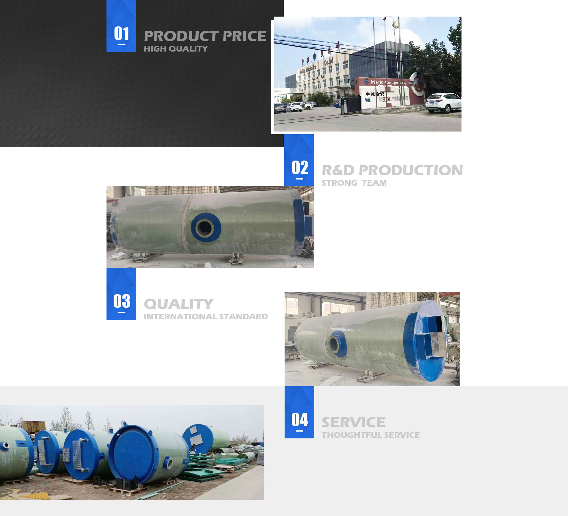 A一體化泵站系統設計制造要求 1)泵站筒體材質GRP玻璃纖維機器纏繞工藝;充分考慮了地質勘查...